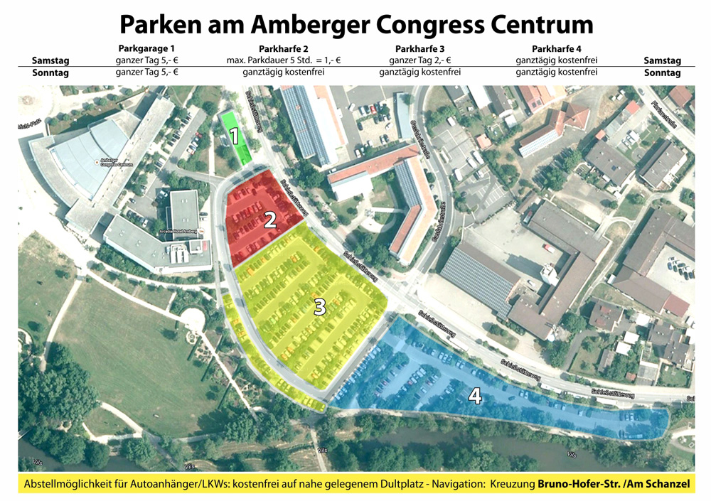 Rund um das Amberger Congress Centrum gibt es zahlreiche Parkmöglichkeiten. Diese Abbildung zeigt Ihnen einen Überblick: